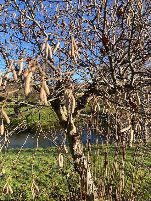 I noticed the catkins from the hazel trees are just about ready to open giving the bees an early source of pollen. A very low pollen but at least it's food. Along with the catkins I found some Ivy which is about to flower.