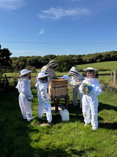 We had a visit from Brabourne school. Very well behaved children and a delight to have at the apiary. They have their own bee suits.